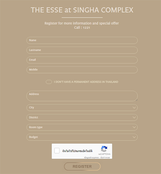 THE ESSE at SINGHA COMPLEX ภายใน SINGHA COMPLEX โครงการพร้อมเปิดพรีเซลล์ในวันที่ 4-5 มีนาคม 2560 นี้ สามารถลงทะเบียนเพื่อรับสิทธิพิเศษได้ด้านล่างนี้ค่ะ