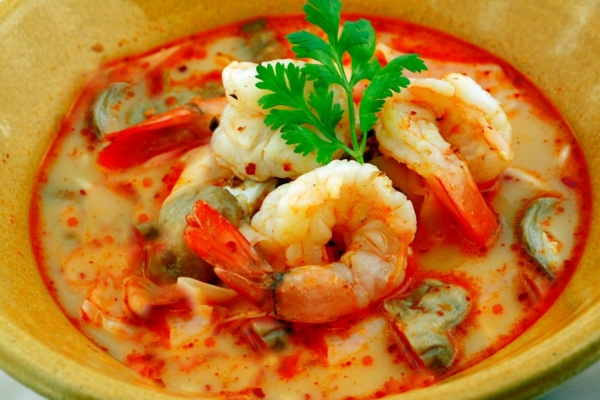 ต้มยำกุ้งที่ร้าน Silom Village ค่ะ ร้านเหมาะสำหรับพาครอบครัว หรือแขกชาวต่างชาติมาทานค่ะ