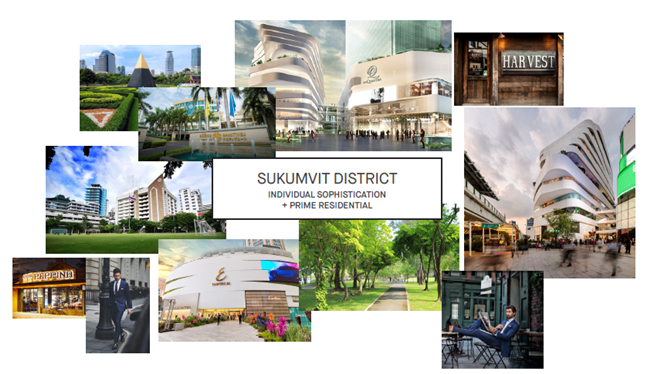 โครงการตั้งอยู่ใจกลางสุขุมวิท เดินทางสะดวกใกล้ EM District, Grade A Office Buildings,
