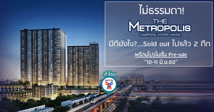 ถือเป็นช้อยส์ที่ไม่ธรรมดาจริงๆ ค่ะกับคอนโดติด BTS สำโรง "The Metropolis Samrong Interchange" ที่ทีมงานเลือกมาแนะนำ ต้องถือว่าเป็นอีกหนึ่งโครงการที่คุ้มค่าตอบโจทย์ให้คนวัยทำงานรุ่นใหม่ได้ครบลงตัวทีเดียว ไม่แปลกใจเลยที่ 2 อาคารจะขายหมด Sold Out ไปเรียบร้อย ส่วนเพื่อนๆ ที่สนใจโครงการนี้ยังมีโอกาสอยู่นะคะ เพราะทางโครงการกำลังจะเปิด Pre-Sale อาคาร B อาคารสุดท้ายติดรถไฟฟ้าในราคาเริ่มต้น 2.5 ล้านบาทในวันที่ 10-11 มิ.ย. 2560 ที่จะถึงนี้ค่ะ แค่เพื่อนๆ คลิกลงทะเบียนที่ลิงก์ด้านล่าง รับไปเลยส่วนลดสูงสุด 200,000 บาท เมื่อจอง-ซื้อห้องของโครงการในวัน Pre-Sales