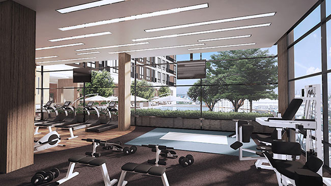 ห้อง Fitness อุปกรณ์ครบครันเปิดรับวิวสระว่ายน้ำที่อาคาร A