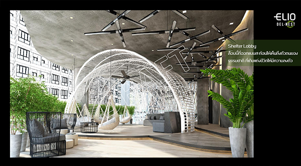 Shelter Lobby ล็อบบี้ที่ออกแบบสะท้อนให้เห็นถึงตัวตนของธรรมชาติ ที่เติมแต่งชีวิตให้มีความลงตัว