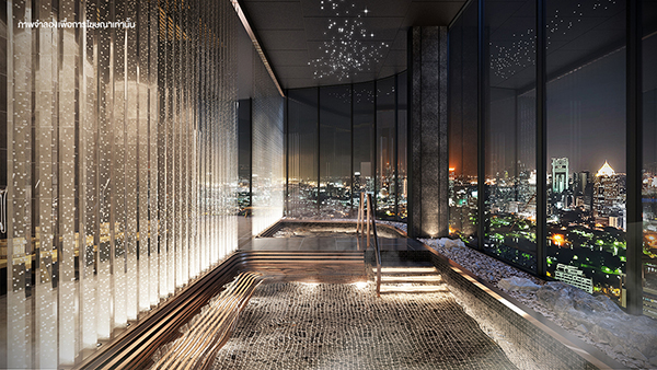 - ส่วนกลาง : Lobby Lounge, Library, Co-Working Space, Fitness and Virtual Fitness, Tea Room, Swimming Pool, Golf Simulator, Separated Male/Female Japanese Onsen