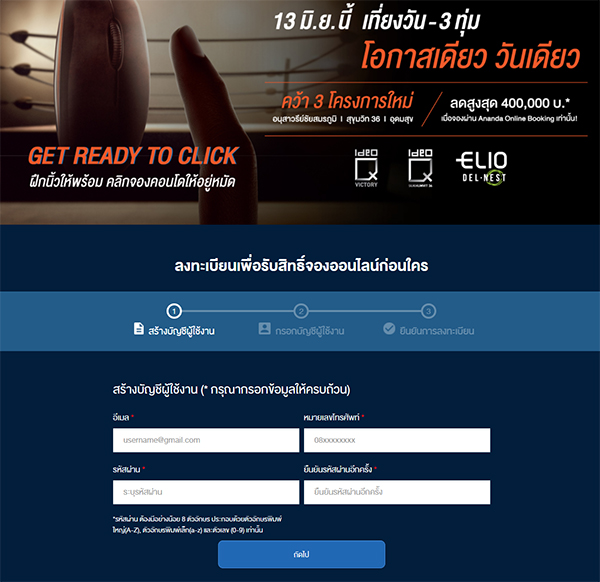 เบื่อมั้ยกับการอยากได้คอนโดแต่ต้องไปยืนรอ หรือนั่งต่อคิวเพื่อรอซื้อ? อนันดาฯ จัดให้แล้วครับ ด้วยการเปิดจองคอนโดทางออนไลน์แบบ "ทุกคนมีสิทธิจองเท่ากัน (Equal Footing) ไม่มีการล็อกห้องก่อน" พร้อมกัน 3 โครงการ ประกอบไปด้วยโครงการ