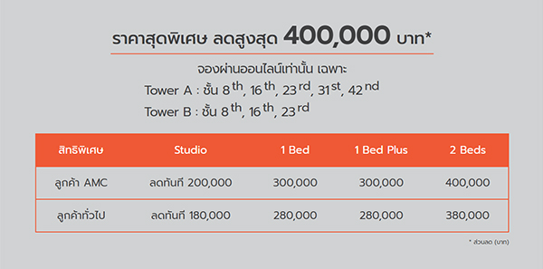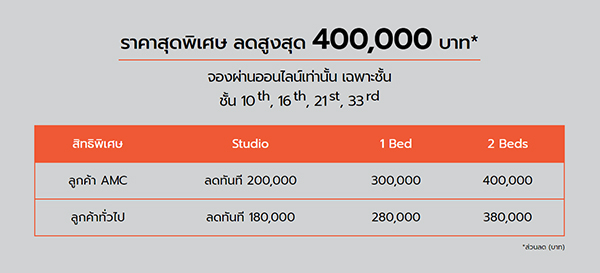 สุดท้ายนี้ อย่าลืมนะครับ ทางอนันดาฯ กระซิบมาว่า ข้อดีของการจองออนไลน์ในรอบนี้คือ ราคาแต่ละห้องต่อตารางเมตรจะถูกที่สุดกว่าการเปิดจองในรอบอื่นๆ และจะไม่มีการล็อกห้องก่อนใดๆ ทั้งสิ้น ดังนั้น คนที่เข้ามาจองออนไลน์ในวันที่ 13 มิถุนายน 2560 นี้จะมีสิทธิเท่าเทียมกันทุกคนครับ และได้ส่วนลดด้วย (ตามตารางด้านล่าง) เพราะฉะนั้นเตรียมตัวให้พร้อม แล้วเปิดคอมพิวเตอร์ หรือโทรศัพท์มือถือรอจองกันได้เลยนะครับตั้งแต่เที่ยงวันเป็นต้นไป