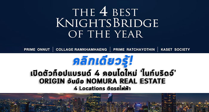 คลิกเดียวรู้! ท็อปแบรนด์ 4 คอนโดใหม่ ‘‘ไนท์บริจด์’’ ORIGIN จับมือ NOMURA REAL ESTATE