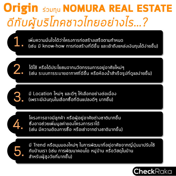 การร่วมทุนกันระหว่าง ORIGIN และ NOMURA REAL ESTATE HOLDING