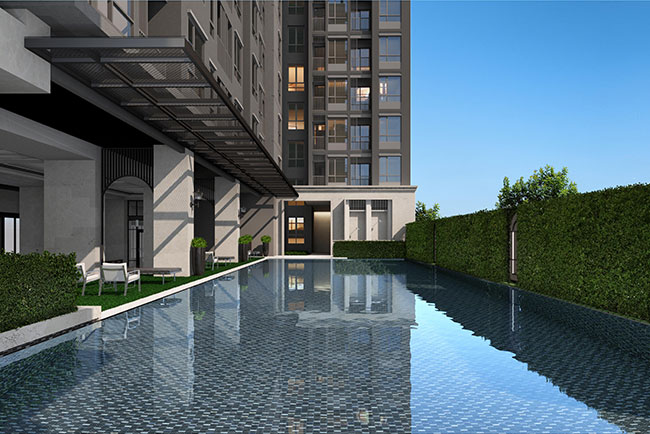 ภาพจำลองสระว่ายน้ำในสวนภายในโครงการ
