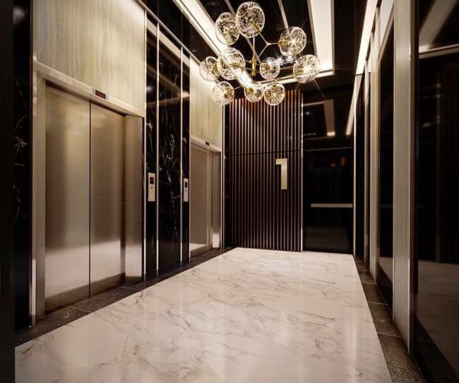 ภาพจำลองบรรยากาศโถงลิฟต์ที่ตกแต่งได้อย่างเรียบหรู