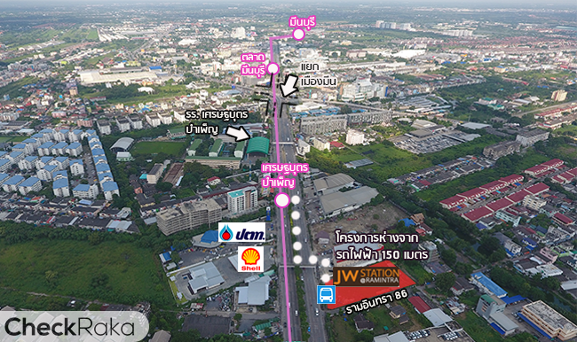 ภาพวิวมุมสูงจากแปลงที่ดินโครงการ JW Station @ Ramintra