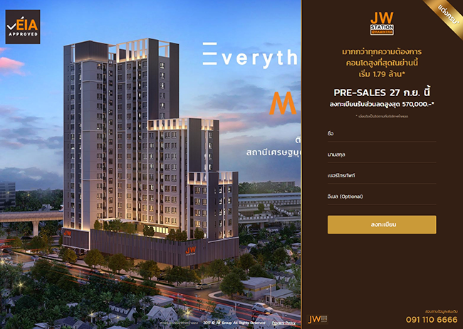 ติดต่อโครงการ JW Station @ Ramintra โทร. 091-110-6666 หรือเว็บไซต์
