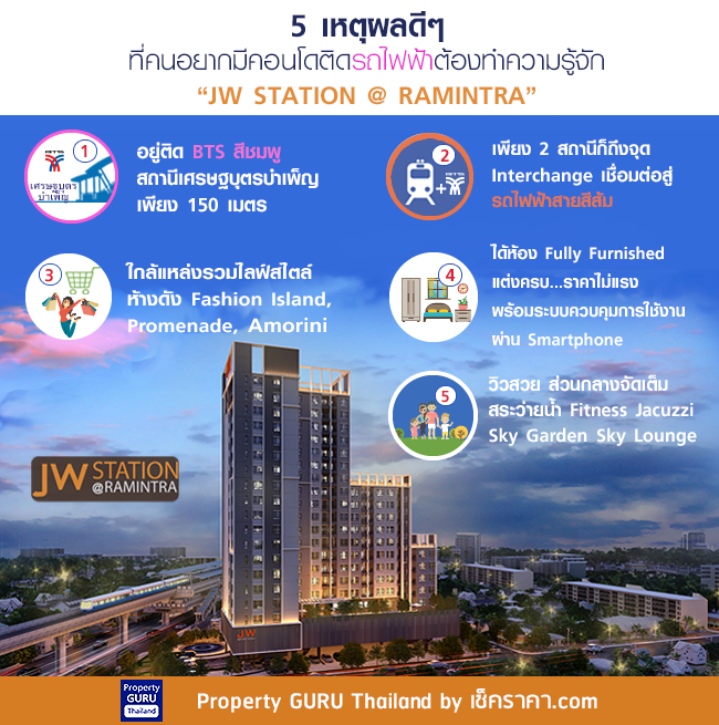จ่ายแค่ 1.79 ล้าน ก็ซื้อคอนโดติดรถไฟฟ้าได้ JW Station @ Ramintra คอนโดติดรถไฟฟ้าสายสีชมพูราคาคุ้ม