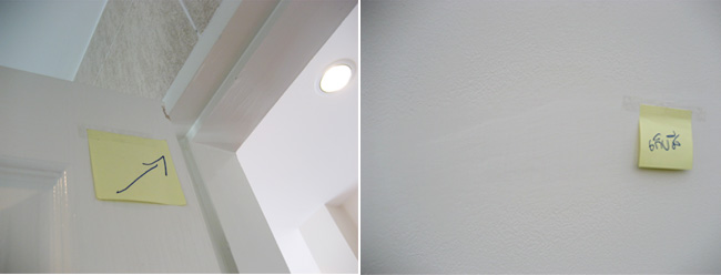 - มีร่องรอยของความชื้น หรือคราบน้ำบนตัวฝ้าหรือไม่ (เช่นรอยสีน้ำตาล หรือครีมอ่อนๆ) ถ้ามีให้สันนิษฐานก่อนว่าอาจมีการรั่วซึมจากน้ำด้านบน