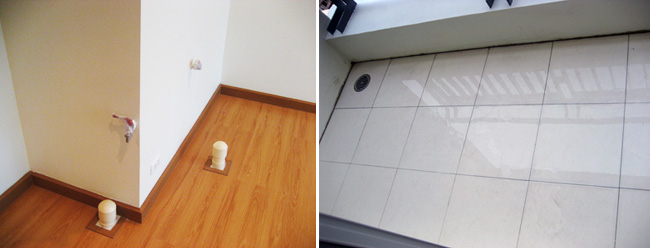 | - พื้นต้องเรียบ และหากเป็นพื้นระเบียงควรมีความลาดเอียงของพื้นในระดับเหมาะสมเพื่อการระบายน้ำลงร่องระบายน้ำ และไม่เกิดน้ำขัง