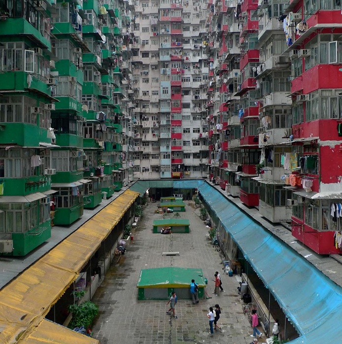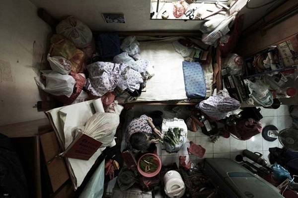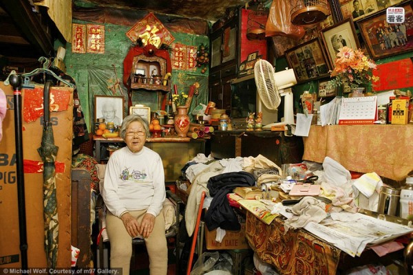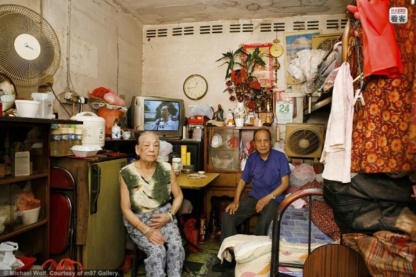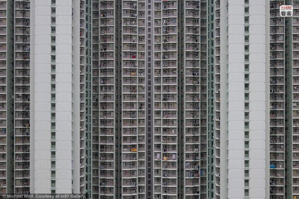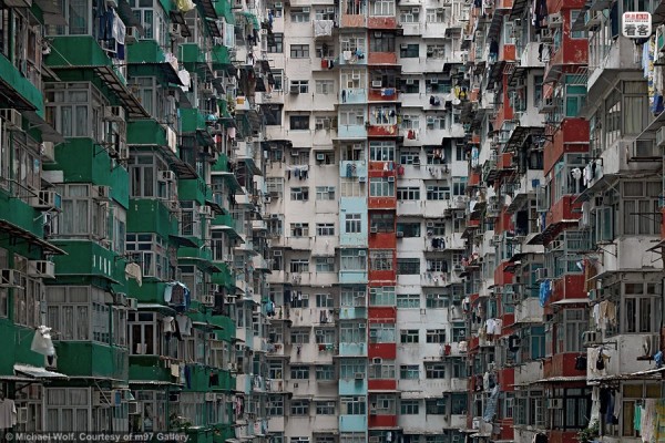 ด้วยความที่ฮ่องกงตั้งอยู่บนเกาะที่มีขนาดพื้นที่เพียง 1,108 ตารางกิโลเมตร ที่ดินบนเกาะฮ่องกงจึงมีราคาสูงมาก การมีบ้านเดี่ยวหรือห้องชุดสักห้องจึงถือว่าเป็นเรื่องเฉพาะของคนมีฐานะเท่านั้น "Architecture of Density" และ "100x100" คือชื่อภาพถ่าย 2 ชุดจากฝีมือช่างภาพชาวเยอรมัน "Michael Wolf" ที่ได้ถ่ายภาพทั้งจากข้างนอกและข้างในอพาร์ตเม้นต์ ทั้งภาพตึกสูงที่เต็มไปด้วยห้องพักถี่ๆ จนเหมือนรังมด และภาพภายในห้องพักที่สะท้อนให้เห็นถึงความแออัดในการอยู่อาศัยของชาวฮ่องกง