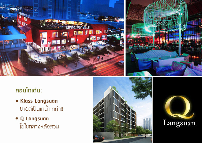 Klass Langsuan นับตั้งแต่ถนนรัชดาภิเษกมีรถไฟฟ้าใต้ดิน ย่านนี้ก็น่าสนใจสำหรับเจ้าของโครงการคอนโด ออฟฟิศสำนักงาน หรือห้างสรรพสินค้าขึ้นเรื่อยๆ ล่าสุดก็ Central พระราม 9 ก่อนหน้านี้ก็ Esplanade หรือย่านคนกลางคืนเช่น รัชดาซอย 4 อีกหน่อยก็จะมีองค์กรระดับยักษ์ๆ อย่างเช่น ตลาดหลักทรัพย์ หรือ AIA เข้ามาอยู่บนถนนนี้ (ที่ดินปัจจุบันใกล้ๆ Esplanade) ถนนนี้คงคึกคักขึ้นอีกหลายเท่า นอกจากนี้ที่ดินแปลงที่ Robinson Ratchada เคยอยู่ตอนนี้ก็กลายเป็นที่ว่างแล้ว เราคงต้องมาดูกันว่าที่ดินแปลงนี้จะกลายเป็นแหล่ง Hang-out ใหม่อะไรต่อไป คอนโดใหม่ๆ ที่น่าสนใจในย่านนี้ก็เช่น