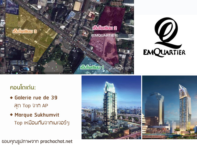 Ceil by Sansiri ในช่วงหลังๆ Emporium อาจโดนแหล่งช็อปปิ้งเดินเล่นแถวสยามทั้ง Siam Paragon หรือ Siam Discovery (โฉมใหม่) แซงหน้าไป แต่เร็วๆ นี้ กลุ่มเดอะมอลล์เตรียมสร้างอาณาจักรสร้างห้างสรรพสินค้าเพิ่มอีก 2 ห้างในบริเวณใกล้ๆ กัน เรียกกันเบื้องต้นก่อนว่า Emporium 2 (จะอยู่ตรงข้าม Emporium ชื่ออย่างเป็นทางการน่าจะเป็น Emquartier) และ Emporium 3 (ตรงแปลงที่ดินประมาณ 10 ไร่อีกด้านของสวนเบญจสิริ) คอนโดใหม่แกะกล่องที่เริ่มเปิดขาย หรือกำลังจะเปิดขายที่น่าสนใจ (และราคาก็แพงหูฉี่ตามโลเกชั่น) ก็เช่น Galerie rue de 39 ของ AP และ Marque Sukhumvit ของ Major Development หรือที่หมดไปแล้วก็เช่น XXXIX by Sansiri ทั้งหมดนี้อยู่กระจุกอยู่ในซอยเดียวกันหมดคือสุขุมวิท 39
