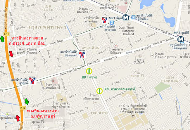 แผนที่ย่านสีลม - สาทร เชื่อมต่อรถไฟฟ้า BTS, MRT, BRT และทางด่วนขั้นที่ 2 4) ใกล้สถานศึกษาที่มีชื่อเสียงหลายแห่งของกรุงเทพ