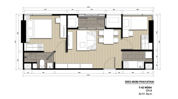 "ไอดีโอ โมบิ พญาไท" (IDEO Mobi Phayathai) ที่มีขนาดเพียง 42.41 ตร.ม. ซึ่งเรียกได้ว่าแทบจะเป็น 2 ห้องนอนที่มีขนาดเล็กที่สุดในตลาดแล้ว แต่ก็สามารถจัดส่วนทุกอย่างได้อย่างลงตัว น่าสนใจไม่น้อยสำหรับผู้ที่ต้องการคอนโด 2 ห้องนอนที่ทำเลดี และราคาไม่สูง (เนื่องจากขนาดห้องไม่ใหญ่มาก)
