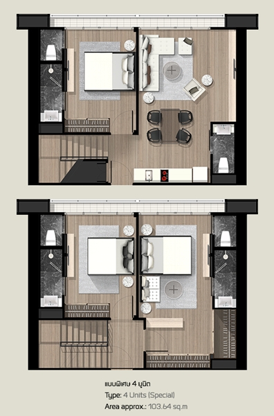 แปลนห้องแบบพิเศษควบ 4 ยูนิตของโครงการ