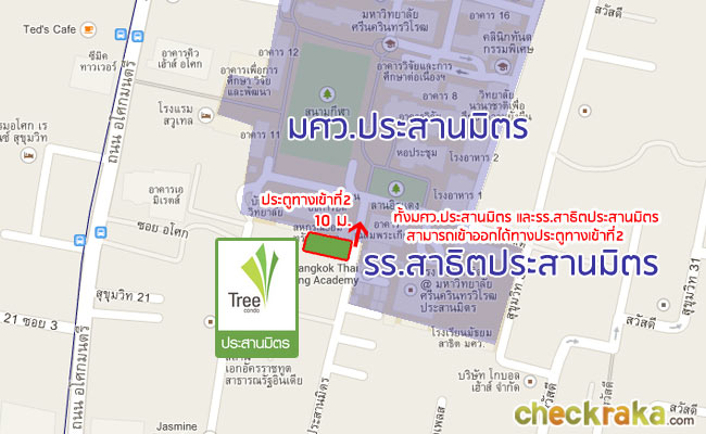 Tree Condo Prasarnmit ในซอยสุขุมวิท 23 โดยโครงการนี้เป็นโครงการที่ติดแนบชิดประตูทางเข้า-ออก (ประตู 2) ของ ม.ประสานมิตร และสาธิตประสานมิตรเลย