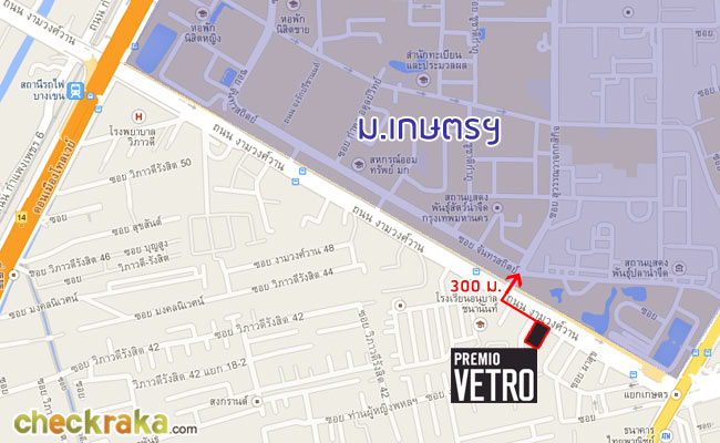 Premio Vetro โครงการนี้เรียกได้ว่าตั้งอยู่ตรงข้ามกับ ม.เกษตรศาสตร์เลย บนที่ดินแปลงที่เคยเป็นปั๊มน้ำมันเก่า ถือได้ว่าอยู่ในทำเลที่เหมาะสำหรับคนที่เรียนมหาวิทยาลัยนี้ เพราะอยู่ในทำเลที่เป็นหนึ่งในแหล่งของกิน และเดินเล่นสำคัญของชาวเกษตรศาสตร์เลย