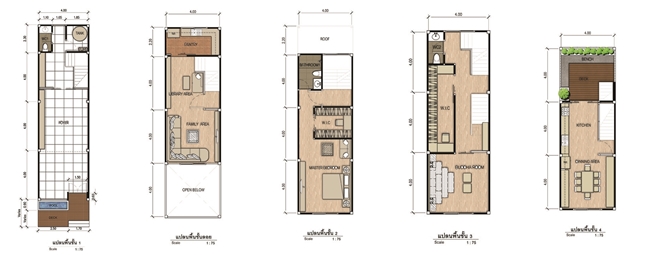 ในส่วนแปลนบ้านที่ตกแต่งใหม่ทางเจ้าของบ้านต้องการปรับเปลี่ยนให้เป็นบ้านสำหรับอาศัย 1-2 คนเลยทำห้องนอนเอาไว้แค่ 1 ห้องนอน โดยจะมีชั้นลอยเป็นห้องสำหรับดูทีวีและอ่านหนังสือ ชั้น 2 จะเป็นห้องนอน ชั้น 3 จะเป็นห้องพระ และ Walk-in Closet สุดท้ายชั้น 4 จะเป็นห้องครัวรวมไปถึงโต๊ะรับประทานอาหาร และสวนเล็กๆ ภายนอกอาคารอีกด้วย