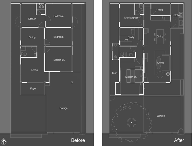 มาดูแปลนบ้านกันต่อเลยครับ จากเดิมเป็นบ้านชั้นเดียวแบบ 3 ห้องนอน ได้ปรับเปลี่ยนเป็นแบบ 1+1 ห้องนอนแทนโดยเพิ่มห้องนอนเล็กที่เป็นห้องทำงานและเพิ่มห้องอเนกประสงศ์ ปรับส่วนห้องพักผ่อนให้กว้างขึ้นพร้อมต่อเติมบ้านให้มีครัวด้านนอกและห้องเก็บของอีกด้วย