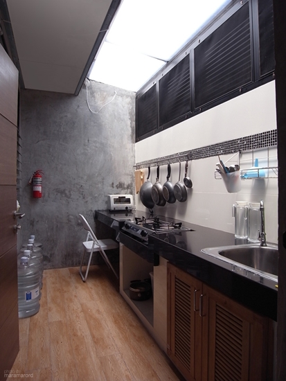 หลังจากตกแต่งเสร็จแล้วมาเริ่มดูกันที่ชั้นลอยที่ได้ตกแต่งเป็นห้องพักผ่อนพร้อมห้องครัวเล็กๆ ไว้ด้านหลัง