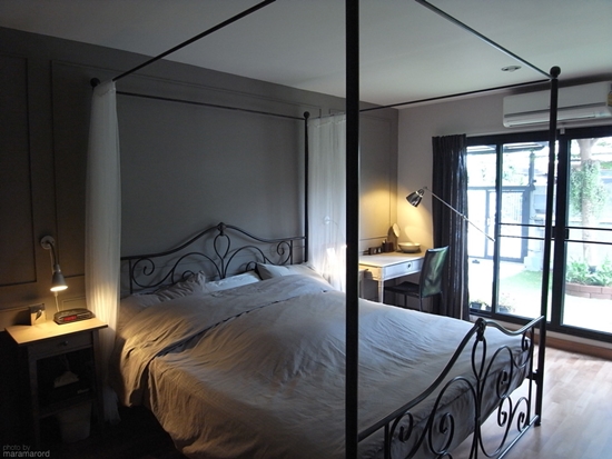 ต่อจากห้องนั่งเล่นมาดูกันที่ห้องนอนที่ตกแต่งใหม่ทั้งหมด โดยห้องนอนจะติดกับสวนหน้าบ้าน แม้ว่าจะเป็นบ้านชั้นเดียวก็สามารถมีวิวสวนจากห้องนอนได้เหมือนกัน