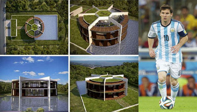 แข้งทองลำดับต้นๆ ของโลกชาวอาร์เจนตินา บ้านหลังนี้ออกแบบโดย Luis de Garrido ตามรูปแบบที่เมสซี่อยากได้ บ้านหลังนี้ห่างจากเมืองบาร์เซโลน่าประมาณ 22 ไมล์ โดยดีไซน์ของบ้านเป็นรูป 6 เหลี่ยม (Hexagon) และแต่ละเหลี่ยมมีกำแพงกั้นกลาง มองภาพรวมของคฤหาสน์หลังนี้ทั้งหมดแล้วให้อารมณ์เหมือนสนามฟุตบอลที่มีลูกบอลตั้งอยู่ตรงกลาง