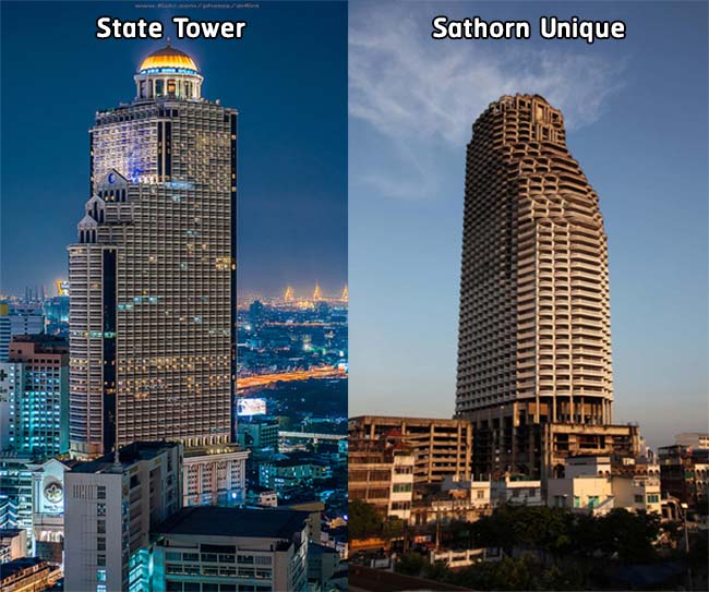 ภาพ State Tower ทางซ้ายมือ เปรียบเทียบกับ Satorn