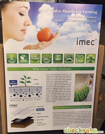 โรงแรม Kyoto Brighton ได้ทำการปลูกมะเขือเทศบนพื้นคอนกรีตในเรือนกระจกล้อมด้วยไม้ไผ่ของโรงแรมเพื่อนำมาใช้ประกอบอาหารลดการสั่งมาจากที่อื่น โดยใช้ฟิล์ม Imec รากของพืชจะงอกลงบนฟิล์ม ไม่ต้องรดน้ำ เป็นวิธีที่เรียกว่า dryponic แตกต่างจาก hydroponic ที่ใช้น้ำเยอะ หรือล่าสุดฟาร์มทดลองในดูไบซึ่ง Imec ทำให้มีการใช้น้ำในปริมาณที่ต่ำและลดการใช้เครื่องปรับอากาศในการปลูกพืชไปได้มาก อีกทั้งยังเป็นหนทางการนำเข้าพืชผักที่มีราคาแพงและคาร์บอนสูงจากยุโรปได้ด้วย
