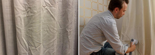 ผ้าม่านที่ยับยู่ยี่ อย่าคิดว่าแขวนๆ ห้อยๆ ไว้เดี๋ยวก็คงหายยับเอง ในความเป็นจริงอาจไม่เป็นเช่นนั้น ข้อแนะนำคือ เมื่อซื้อผ้าม่านมา หรือหากซักแล้ว ให้นำผ้าม่านยับๆ นั้นไปรีดด้วยเตารีดไอน้ำสักนิดนึงจะช่วยให้เวลานำไปแขวน ผ้าม่านดูเข้ารูปสวยงามค่ะ