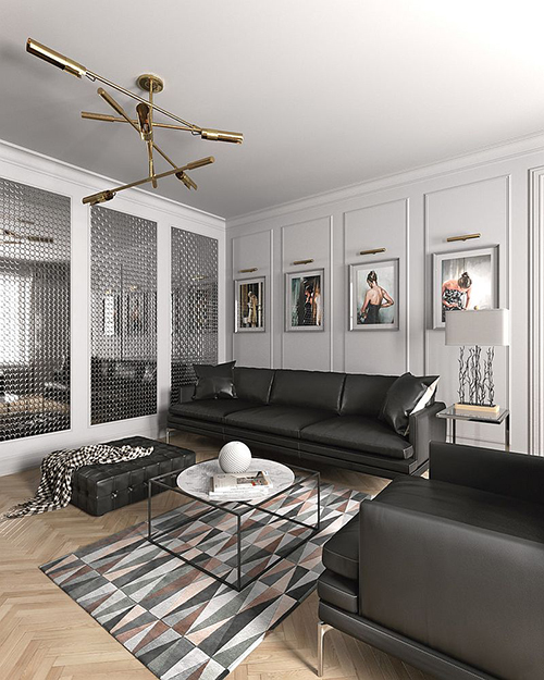 10. โซฟาหนังสีดำสุดเท่ ตัดกับผนังสีขาวแถมรูปอาร์ตๆ