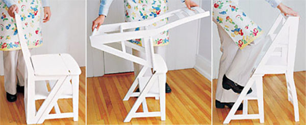 เก้าอี้นั่งที่สามารถปรับเปลี่ยนให้กลายเป็นบันไดไม้ขนาดย่อมไว้ใช้ปีนหยิบของในที่สูงได้