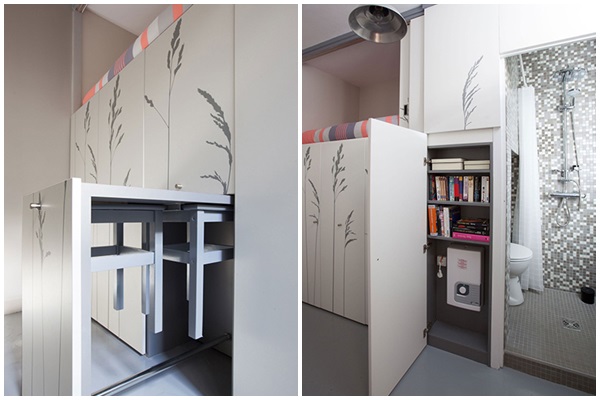 ทุกอย่างถูกซ่อนไว้ในตู้ ทั้งชั้นเก็บของ, ตู้เสื้อผ้าและโต๊ะทำงาน อยากใช้งานก็แค่ดึงออกมาเท่านั้น