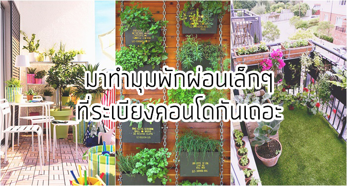 สำหรับคนที่อยู่คอนโดคงมีไอเดียอยากแต่งสวนเล็กๆ หลังห้องอยู่บ้างใช่มั้ยล่ะคะ แต่ด้วยพื้นที่จำกัดทำอะไรก็ดูรกไปหมด แนะนำให้ทำเป็น"สวนแนวตั้ง" หรือ "สวนแบบแขวน" จะดีที่สุดค่ะ เพราะช่วยประหยัดพื้นที่ทำให้วางเก้าอี้หรือโต๊ะตัวเล็กๆเอาไว้นอนรับลมได้อีก ชอบไอเดียไหนลองนำไปปรับใช้กับระเบียงห้องของคุณดูนะคะ