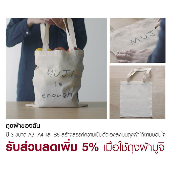 What is MUJI? โปรโมชั่นสินค้าราคาพิเศษจากมูจิ รับส่วนลดเพิ่ม 5% เมื่อใช้ถุงผ้ามูจิ ที่มูจิทุกสาขา วันนี้ - 27 กรกฎาคม 2560