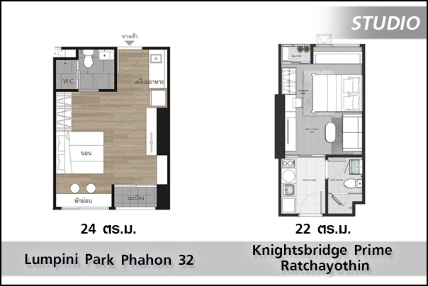 | - สตูดิโอ พื้นที่ใช้สอย 22.4 ตร.ม.