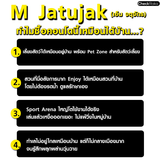 เอ็ม จตุจักร (M Jatujak) เป็นคอนโด แต่ตอบโจทย์อารมณ์ความเป็นบ้านได้ดีทีเดียวค่ะ ติดรถไฟฟ้า 4 สถานี มี Sport Arena ขนาดใหญ่ แถมยัง