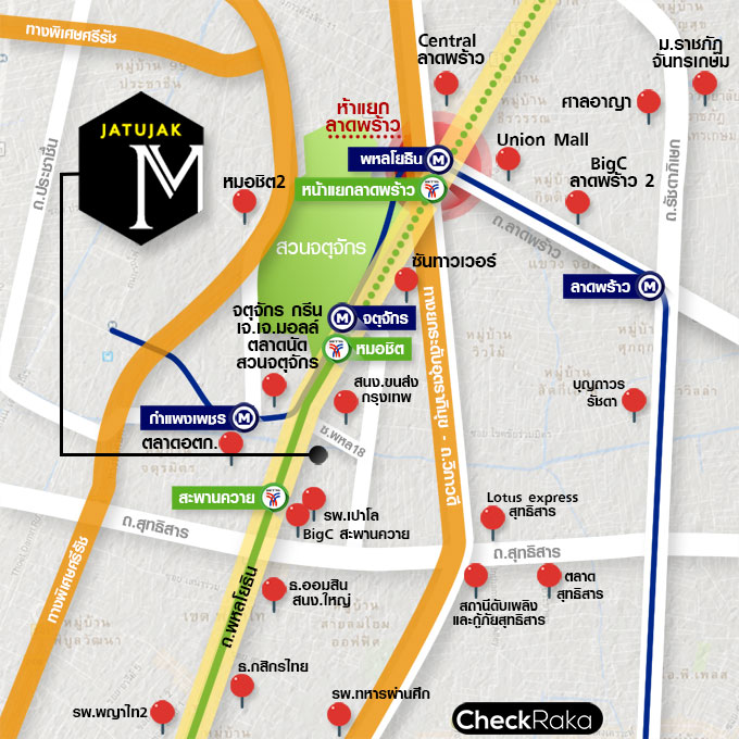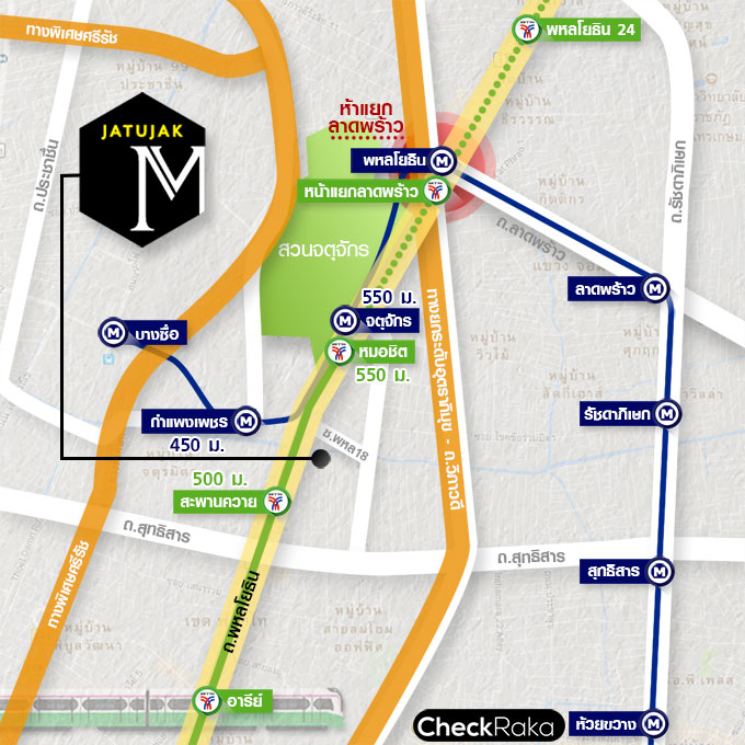 ซอยพหลโยธิน 18 ติดกับกรมการขนส่ง ไม่ไกลจากตลาดนัดสวนจตุจักร และตลาด อตก. ซึ่งทำเลตรงนี้จะเรียกว่าอยู่ตรงกลางระหว่าง BTS หมอชิต, MRT สวนจตุจักร, MRT กำแพงเพชร และ BTS สะพานควาย รวม 4 สถานีด้วยระยะเดินทางเพียง 5 นาที เลือกไม่ถูกเลยใช่มั้ยล่ะคะ จะเดินไปสถานีรถไฟฟ้าไหนดี ด้านหน้าสวนจตุจักรเอง ก็ยังเป็นศูนย์รวมรถประจำทางหลากสาย การเดินทางด้วยรถส่วนตัวก็สะดวก เนื่องจากโครงการอยู่ไม่ลึกมาก ใช้ถนนพหลโยธินเข้าเมือง-ออกเมืองได้สะดวก และซอยพหลโยธิน 18 เองก็สามารถทะลุไปซอยอินทามระ 15 ได้ค่ะ