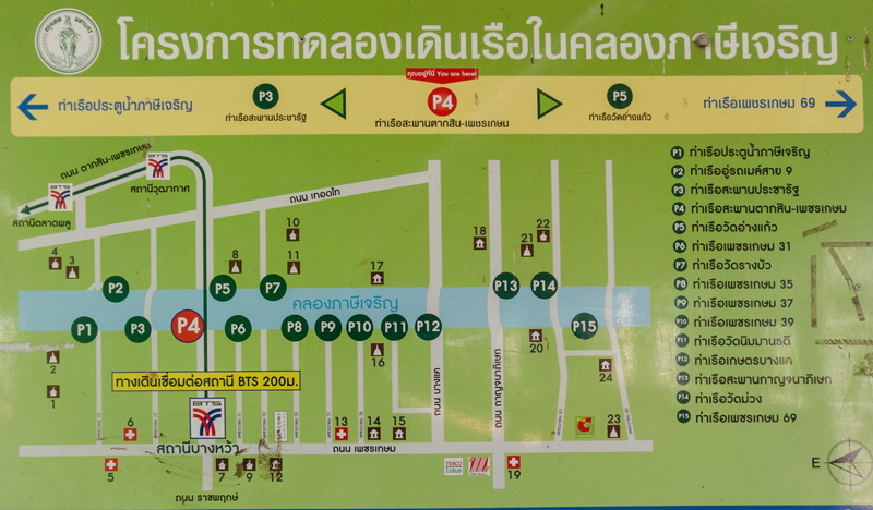 ท่าเรือสะพานตากสิน - เพชรเกษม ของคลองภาษีเจริญ ที่เราเดินไปเดินแวะกันมาเมื่อสักครู่ บริเวณท่าจะมีแผนที่บอกท่าเรืออยู่ค่ะ