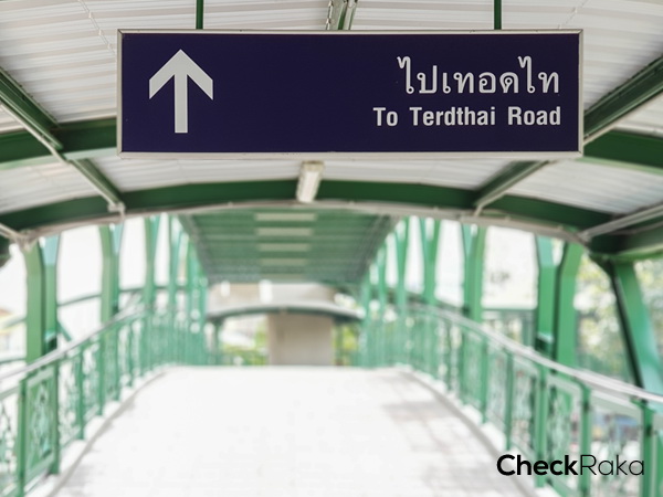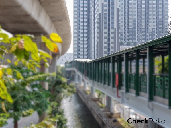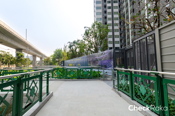 แปบๆ ก็ถึงแล้ว เจอทางเข้าด้านหน้าโครงการพอดี เรียกได้ว่าเป็น Skywalk ส่วนตัวของโครงการเลยก็ได้นะเนี่ย