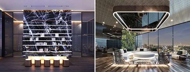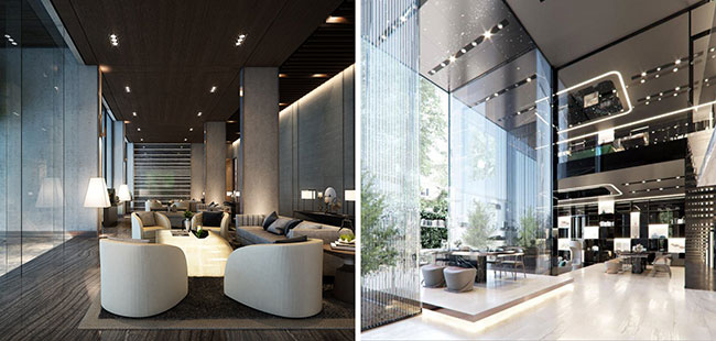นอกเหนือจากความ Private ที่มากกว่าและความคุ้มค่าที่ลูกค้าจะได้รับ พื้นที่ส่วนกลางของ LIFE สุขุมวิท 62 เมื่อเทียบกับ RHYTHM เอกมัย จะเห็นได้ชัดว่าจะมีความละม้ายคล้ายคลึงกันในส่วนต่างๆ ที่ไม่ได้มีเฉพาะเพียงแต่ความหรูหรา แต่การออกแบบดีไซน์และ Features หลายๆ อย่างมีความล้ำหน้ายิ่งกว่า ที่ เอพี ตั้งใจพัฒนาและยกระดับคุณภาพชีวิตให้เหมาะกับยุคสมัยยิ่งขึ้น โดยเป็นสิ่งที่ที่อยู่อาศัยยุคนี้จำเป็นต้องมี ไม่ใช่เป็นเพียงสิ่งที่เอาไว้มาเพิ่มมูลค่าโครงการเท่านั้น ตั้งแต่การออกแบบ Lobby ที่แยกพื้นที่ระหว่างโซนที่ลูกบ้านใช้งานกับส่วนพื้นที่รับรองบุคคลภายนอกที่เป็น Foyer พื้นที่โถงรับรองขนาดเล็กด้านหน้าทางเข้าอาคาร เสมือนโรงแรมระดับเวิลด์คลาส แต่คราวนี้ได้ถูกพัฒนาต่อยอดด้วยการดึงพื้นที่สีเขียวเข้ามาอยู่ร่วมในงาน Interior ในรูปแบบ Interlock Landscape ให้ผู้อาศัยได้รู้สึกใกล้ชิดธรรมชาติมากยิ่งขึ้นทั่วทั้งโครงการ