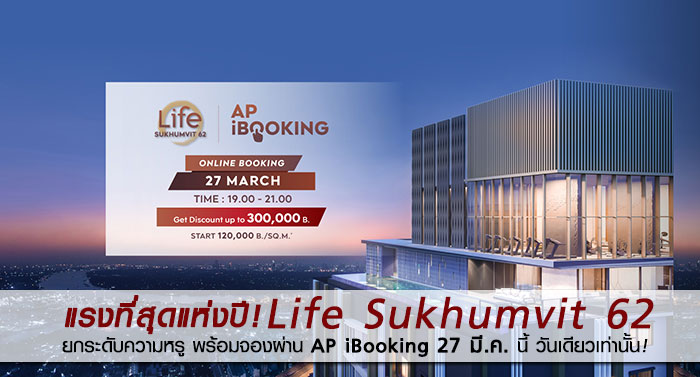 แรงที่สุดแห่งปี Life Sukhumvit 62 ยกระดับความหรูพร้อมจองผ่าน AP iBooking 27 มี.ค. นี้ วันเดียวเท่านั้น!