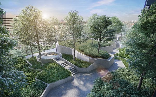 ภาพวิวสวนจากชั้น Mezzanine ด้านทิศตะวันตก