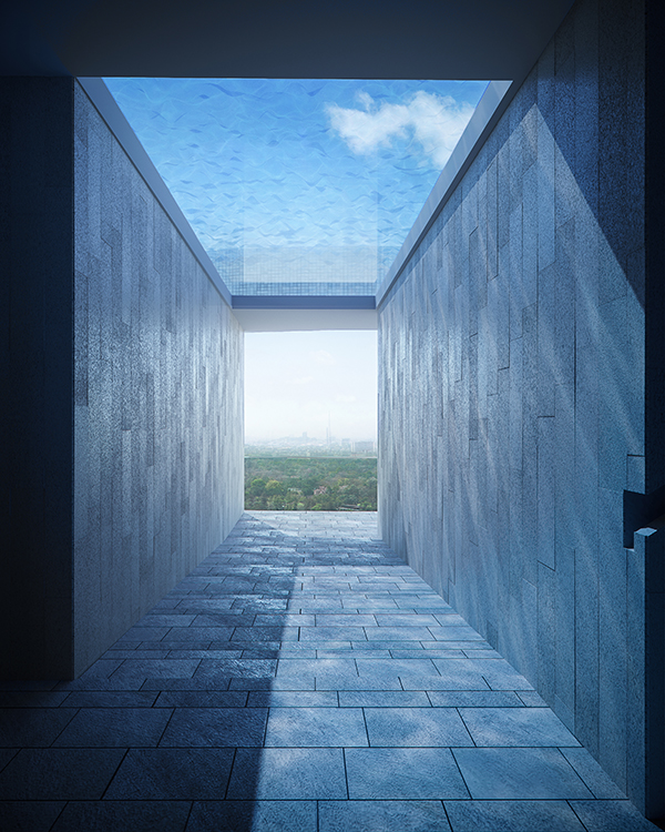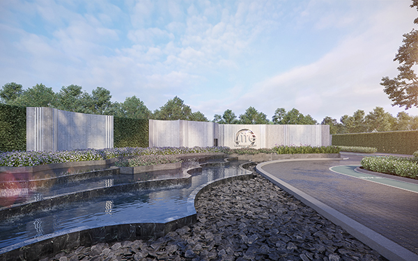ด้านหน้าโครงการดีไซน์ให้เหมือนภูเขา หุบเขา เลือกใช้ลายฉลุเพื่อให้แสงลอดออกมาเหมือนดวงดาว