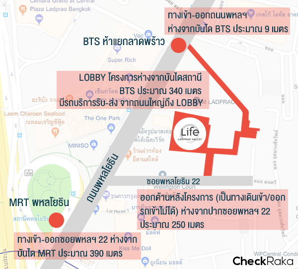 ไลฟ์ ลาดพร้าว แวลลี่ย์ (Life Ladprao Valley) ตั้งอยู่ที่ถนนพหลโยธิน แขวงจอมพล เขตจตุจักร กรุงเทพมหานคร ระยะ Lobby ถึงทางเข้า-ออกถนนพหลโยธิน (ติด BTS สถานีห้าแยกลาดพร้าว) อยู่ที่ประมาณ 340 เมตรเท่านั้น ใครนึกไม่ออกว่าอยู่ตรงไหนก็อยู่ตรงข้ามกับเซ็นทรัล ลาดพร้าว ฝั่งถนนพหลโยธินเลยค่ะ โครงการมีรายละเอียดเบื้องต้นดังนี้