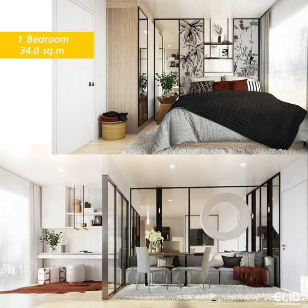 ภาพจำลองภายในห้องพักอาศัยแบบ 1 Bedroom ขนาด 34 ตร.ม.